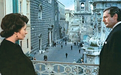 Palazzo Pandola, in piazza del Gesù, è nel cuore del centro storico. Impossibile non notarlo! La sua facciata rossa appare in una puntata del film “L’Oro di Napoli”, nell’episodio che vede De Sica giocare a carte con il figlio del bidello, Gennarino. Lo stesso Palazzo è la casa di Sophia Loren e Marcello Mastroianni in “Matrimonio all’Italiana”.