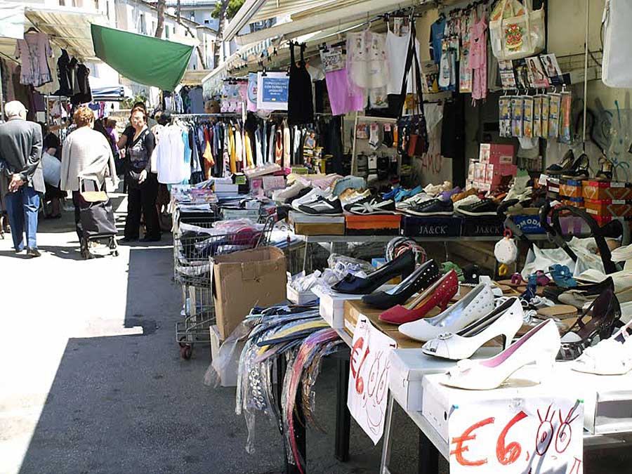 Al mercato del borgo di S. Antonio si può acquistare di tutto: dagli abiti ai dischi, dagli alimenti ai cosmetici.